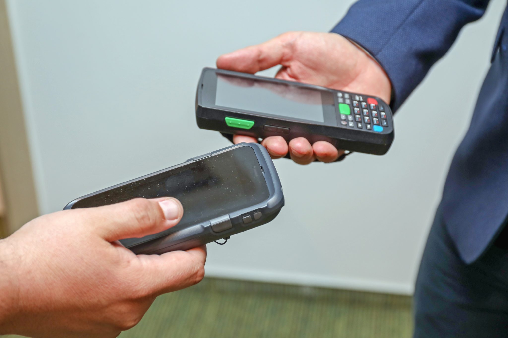 • Touchbasierte Handhelds (Smartphone-ähnlich): Weniger Reichweite beim Scannen, dafür leicht, flexibel und vor allem sehr handlich. Vielfältige Erweiterung möglich – etwa mit Griffen oder Armhalterungen. Beispiel: Zebra TC7x-Serie
